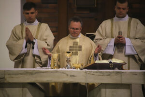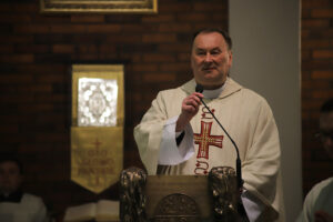 Uroczystej Mszy św. przewodniczył sam Jubilat, który dziękował dobremu Bogu za lata swojej pasterskiej posługi. Homilię wygłosił ks. Andrzej Orczykowski SChr, który ukazał podobieństwo kapłańskiej posługi ks. Rektora, do misji, jego patrona – św. Jana Chrzciciela. Kaznodzieja starał się ukazać Boże działanie w posłudze kapłańskiej naszego przełożonego.