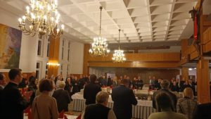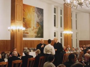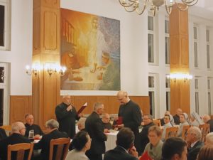 Następnie, wraz z przyjaciółmi i dobrodziejami naszego zgromadzenia, udaliśmy się do zakonnego refektarza na wspólną kolację, gdzie Przełożony Generalny wręczył medale za zasługi na rzecz Towarzystwa Chrystusowego, które otrzymali p. Mila Matveeva i p. Grzegorz Duszyński.