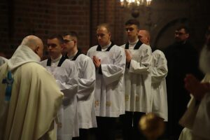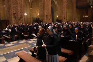Dziś, w przededniu Święta Ofiarowania Pańskiego, zgromadziliśmy się w Katedrze Poznańskiej na Eucharystii sprawowanej pod przewodnictwem Arcybiskupa Metropolity Poznańskiego Stanisława Gądeckiego wraz z innymi członkami różnych wspólnot zakonnych, dziękowaliśmy za dar powołania do życia konsekrowanego. Nasi klerycy włączyli się także do scholi, która śpiewała w czasie w Mszy Świętej.