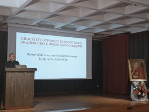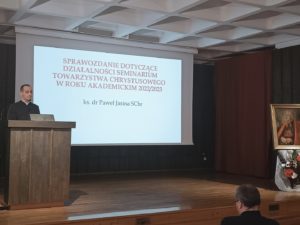 Zgodnie z akademicką tradycją, mogliśmy wysłuchać wykładu inauguracyjnego, który wygłosił ks. dr Łukasz Wacław SChr, Sekretarz Generalny Towarzystwa Chrystusowego i wykładowca naszego seminarium.