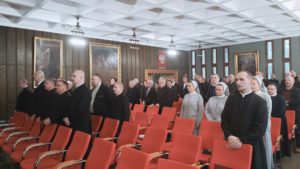 Następnie, zebrani w auli Domu Głównego, odśpiewaliśmy hymn Gaude, Mater Polonia, po czym, wysłuchaliśmy przywitania i słowa wprowadzenia Rektora Seminarium Towarzystwa Chrystusowego, ks. dra Jana Hadalskiego SChr, oraz rocznego sprawozdania, które przygotował ustępujący prefekt, a obecnie magister nowicjatu, ks. dr Paweł Jasina SChr, podsumowując zarazem minione wydarzenia w naszej wspólnocie na przestrzeni roku akademickiego i formacyjnego.
