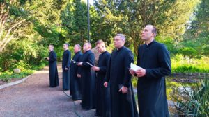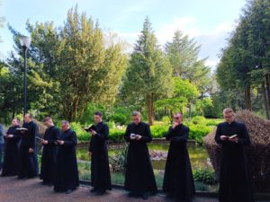 Po zakończonych wykładach i wykonaniu naszych codziennych spraw, gromadzimy się w parku przed figurą Maryi, Królowej Towarzystwa Chrystusowego i śpiewem wzywamy jej wstawiennictwa w naszych prośbach, intencjach wszystkich ludzi i całego świata.