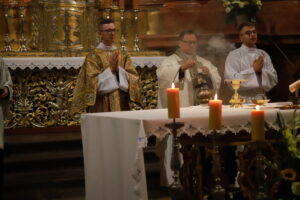 Mszy św. przewodniczył Wikariusz Generalny, ks. Bogusław Burgat, natomiast homilię wygłosił ks. Wojciech Brzoski duszpasterz akademicki parafii św. Rocha. Natomiast nasza wspólnota zadbała o oprawę liturgiczno-muzyczną Eucharystii.