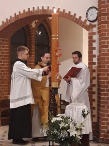 Nasza obecność na parafiach, była nie tylko pomocą w przygotowaniu samego Triduum, dekoracji, liturgii, ale i autentycznym świadectwem powołania, jakie realizujemy w służbie dla Pana Boga. Nasi współbracia, którzy zgodnie z biegiem formacji seminaryjnej, przyjęli już odpowiednie posługi, wspierali swoich braci duszpasterzy w zadaniach jakie powierzył im Kościół: lektorzy błogosławili pokarmy wielkanocne, akolici wykonywali powierzone im zadania jako nadzwyczajni szafarze Komunii Świętej, zaś diakoni pomagali kapłanom w posłudze słowa i liturgii.