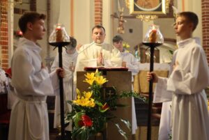 Nasi klerycy uczestniczyli w uroczystości Najświętszego Ciała i Krwii Pana Jezusa w parafiach prowadzonych przez naszych współbraci w: Płotach, Szczecinie, Stargardzie, Dobrzanach, Władysławowie, Poznaniu i Morasku.