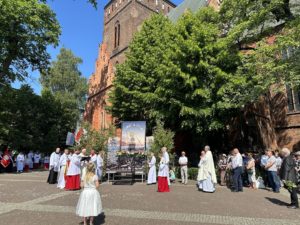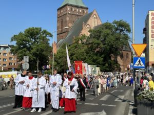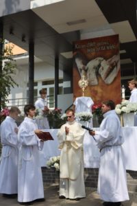 Uroczystość Najświętszego Ciała i Krwii Chrystusa, potocznie nazywana Bożym Ciałem i przypadająca w czwartek po uroczystości Najświętszej Trójcy, była dla nas okazją do akcji duszpasterskiej i oddania czci Panu Jezusowi, uczestnicząc w liturgii i procesjach eucharystycznych we wspólnotach parafialnych prowadzonych przez księży chrystusowców: