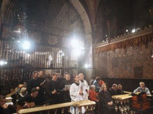 W trakcie nocnego czuwania staraliśmy się umocnić zgromadzonych pielgrzymów również od strony fizycznej, poprzez wydawaną kawę i herbatę, by ponownie zgromadzić się przed obliczem Matki Bożej Częstochowskiej i uczestniczyć w nabożeństwach w intencji Polonii, prowadzonych przez poszczególne wspólnoty parafialne: