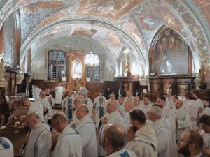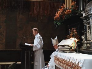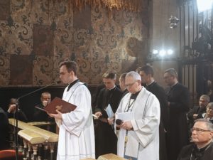 Nasze spotkanie na Jasnej Górze rozpoczęło się od powitania w Auli Kordeckiego przybyłych pielgrzymów przez Wicesuperiora Domu Głównego Towarzystwa Chrystusowego, poprzedniego Referenta Powołań, ks. Mateusza Sochę SChr.